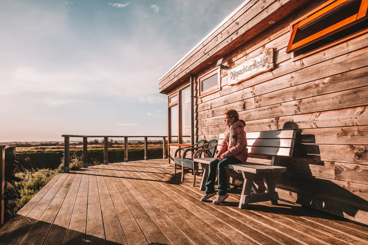 Te midden van voorbijtrekkende ganzen, grazende schapen, zeilboten en af en toe een ree langs de oever ontvouwt zich het decor van de Dijkwachterslodge. Met panoramisch uitzicht over de Zuiddijk, het Haringvliet en het eiland Voorne-Putten voelt elke dag hier anders, afhankelijk van het licht, het weer en het seizoen.
